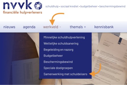 Tip: op dit moment is aansluiten gratis, maak er gebruik van! | | | | | | | | | Met Basisdienstverlening hulpaanbod overal gelijktrekken | NVVK stimuleert nationaal niveau in schuldhulpverlening | | | | | Met de 'Basisdienstverlening schuldhulpverlening' brengen we samen met de VNG, Divosa en het ministerie van Sociale Zaken de schuldhulpverlening in heel Nederland op een gelijk basisniveau. Op onze website houden we op kaarten van Nederland bij hoe ver gemeenten zijn, onder andere qua aansluiting op Vish, het Schuldenknooppunt en het gebruik van de Kennisgeving. Zo bevorderen we eenduidigheid en efficiëntie voor zowel hulpvragers als schuldeisers. | | | | | | | | De NVVK Belofte in de praktijk: wat hulpvragers ervaren | | Wat merken hulpvragers ervan dat organisaties werken volgens de NVVK Belofte? De resultaten laten zien dat de financiële hulpverlening gemiddeld een 7,8 krijgt, maar ook waar verbetering mogelijk is. Tijdens een online sessie op 5 maart gingen professionals en een ervaringsdeskundige met elkaar in gesprek over de uitkomsten en wat die betekenen voor de dagelijkse praktijk van schuldhulpverlening. | | | | | | | | | Hogeschool Amsterdam rapporteert over kortere aflostermijn: | 'Halvering geeft sneller perspectief, effect op aanmeldingen nog niet zichtbaar' | | | | | Staatssecretaris Nobel van SZW stuurde twee rapporten over de halvering van de saneringstermijn naar de Tweede Kamer. Hij schrijft erbij dat het kabinet positief is over de halvering. Wel acht Nobel waakzaamheid geboden wat betreft de inrichting van nazorg en begeleiding om terugval te voorkomen. | | | | | | | | Pauzeknop nu beter bereikbaar voor alle gemeenten | | Het versturen van een Kennisgeving aan schuldeisers was al mogelijk op het Schuldenknooppunt via de modules Schuldregeling en Betalingsregeling. In de praktijk bleek dit niet altijd toereikend. Veel gemeenten voeren namelijk alleen de eerste fase van schuldhulpverlening zelf uit. Het vervolg, zoals een schuldenregeling of betalingsregeling, wordt vaak uitbesteed aan een andere organisatie. Hierdoor kon het versturen van de Kennisgeving aan schuldeisers tot nu toe niet altijd via het Schuldenknooppunt verlopen. Dat is nu veranderd. | | | | | | | | | Suggesties voor verbetering? Laat het ons weten | Ook op onze website: informatie gericht op schuldeisers | | | | | Op de homepage van onze website treft u onder het kopje 'Werkveld' een pagina aan over 'Samenwerking schuldeisers'. Daar publiceren we relevante informatie voor schuldeisers. Mist u informatie of wilt u graag aandacht voor bepaalde initiatieven? Laat het ons weten! | | | | | | | | Nieuw loket om illegale schuldhulp te melden | | Volgens de Wet op het consumentkrediet (Wck) mogen, naast gemeenten en specifieke beroepsgroepen als bewindvoerders en advocaten, andere organisaties alleen schuldbemiddeling uitvoeren als zij dit kosteloos doen. Verdenk jij een organisatie ervan dat die mensen met schulden laat betalen voor het oplossen van hun schulden? Maak er melding van. | | | | | | | | | Belangrijke bijeenkomsten | | | | | | | | | | | | schuldhulp • sociaal krediet • budgetbeheer • beschermingsbewind | | | | | | |