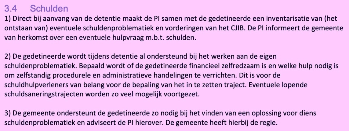 Passage in het 'Bestuurlijk akkoord Nazorg ex-gedetineerden' over schuldenproblematiek