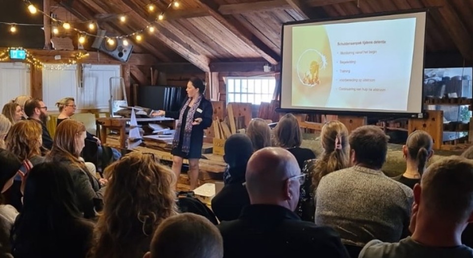 Gercoline van Beek (onderzoeker Hogeschool Utrecht) deelde de nieuwste inzichten uit onderzoeken op het snijvlak van het forensische domein en de schuldhulpverlening.